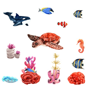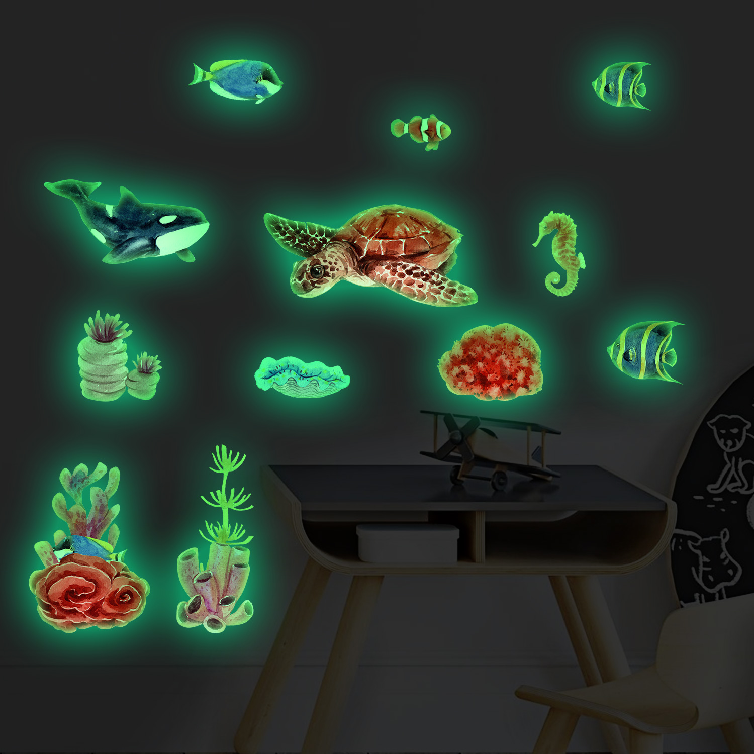 夜光贴纸水彩绿光海洋海豚小鱼章鱼儿童房夜光贴海洋生物夜光墙贴