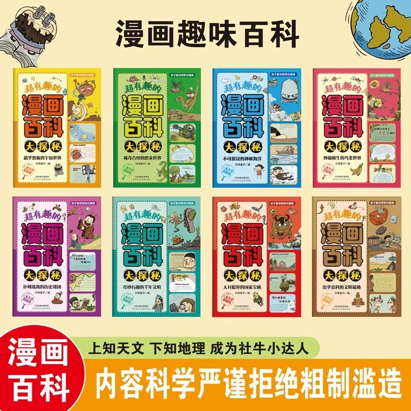漫画百科全书宇宙恐龙神秘海洋鸟类世界历史谜团千年文明遗迹国家宝藏儿童故事书籍 儿童思维探索版 全8册超有趣 漫画百科大探秘