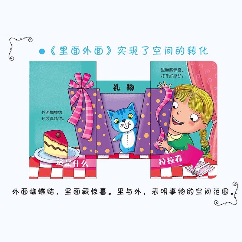 现在将来幼儿园宝宝绘本0 4岁洞洞书5 惊奇拉拉看系列全4册里面外面 撕不烂 上面下面 6周岁幼儿启蒙认知 书推拉玩具书 前面后面