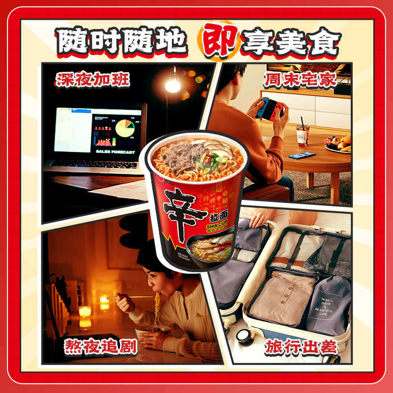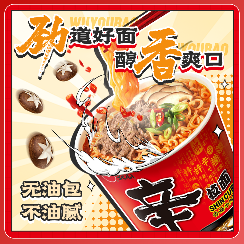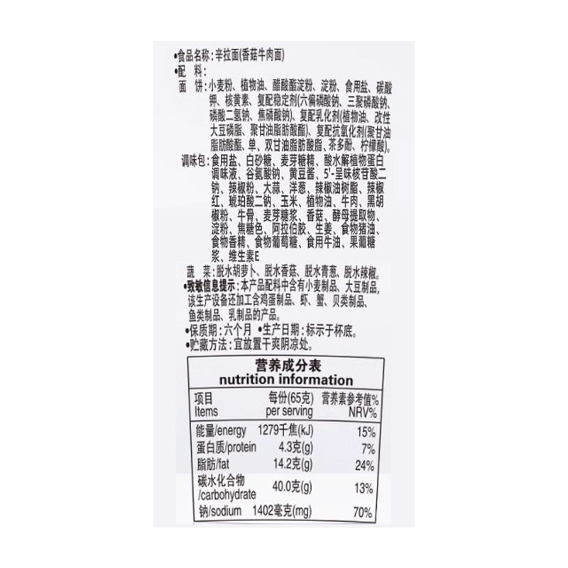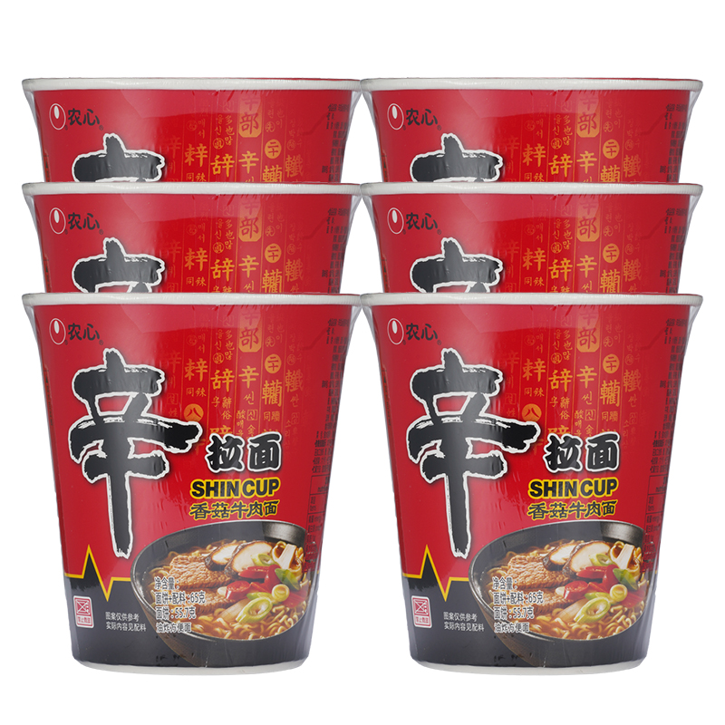 农心香菇牛肉味辛拉面杯面65g 6杯方便面泡面方便速食桶面