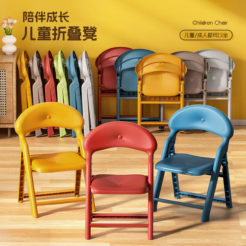 加厚儿童靠背椅可折叠塑料幼儿园宝宝卡通小板凳椅子防滑家用座椅