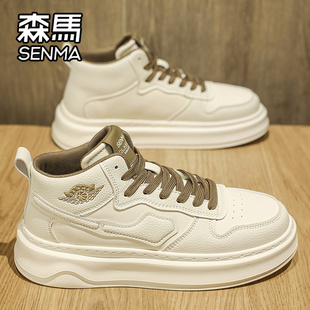 秋季 高帮真皮运动增高小白鞋 高级感白色板鞋 休闲皮鞋 男士 森马男鞋