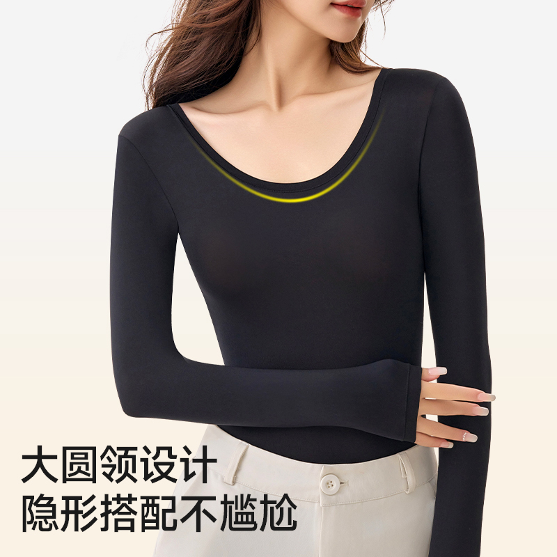 女士秋冬2025新款 连体式 打底衫 肌底衣超薄无痕弹力大码 美肤衣 长袖