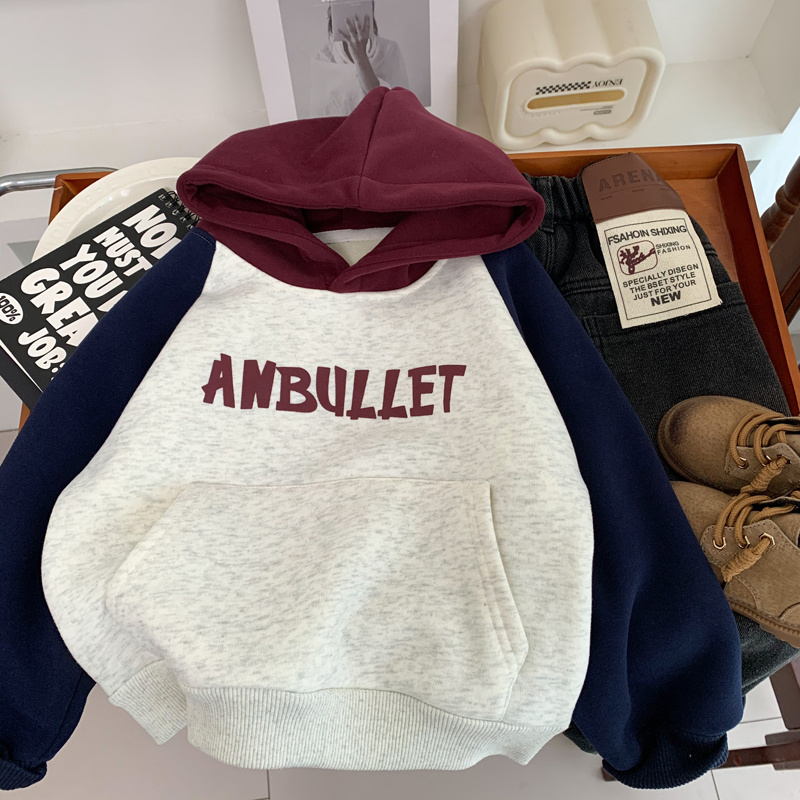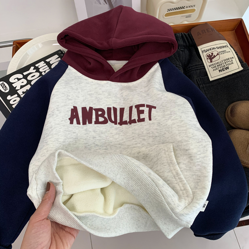 连帽衫 上衣纯棉时尚 潮 儿童洋气插肩袖 男童一体绒卫衣秋冬2025韩版