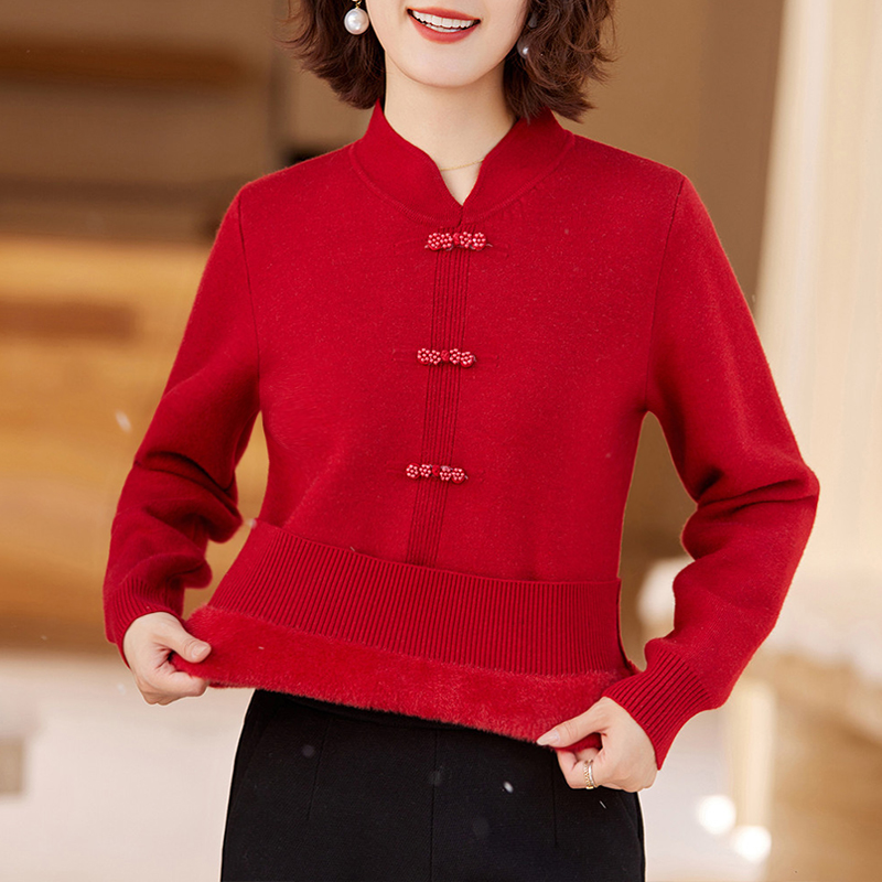 洋气上衣保暖加绒加厚针织打底衫 妈妈毛衣2024新款 秋冬中老年女装