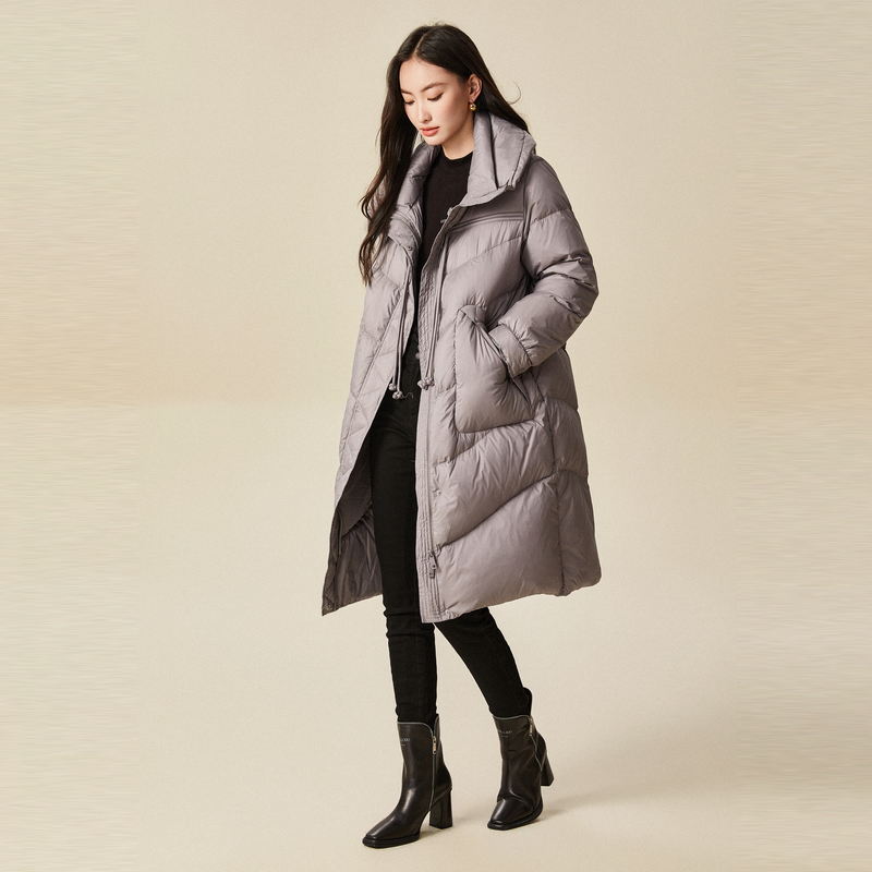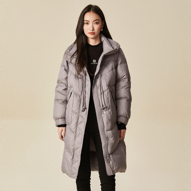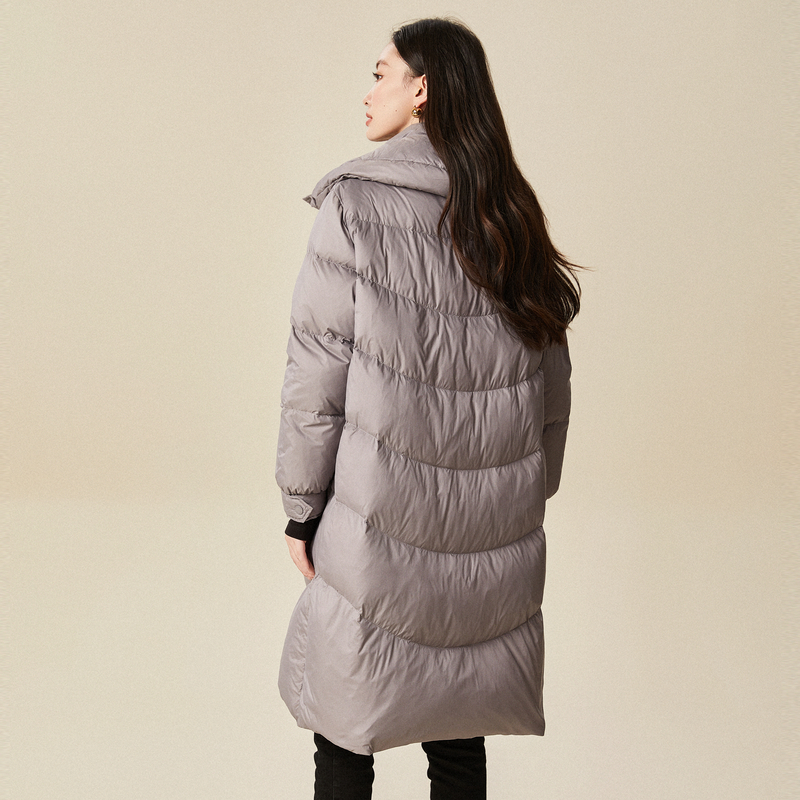 通勤加厚保暖长袖 XG雪歌中长款 新款 冬季 外套女 灰色鹅绒羽绒服时尚