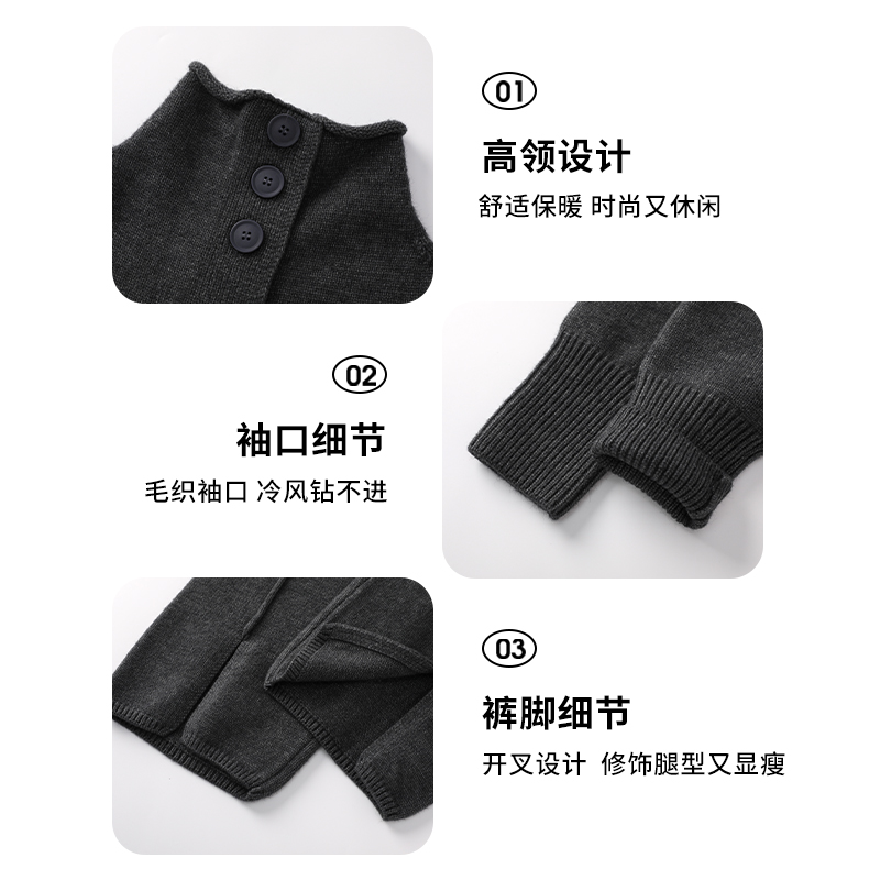 后背开叉纽扣设计显瘦针织上衣女 垂坠显瘦高腰半身裙两件套套装