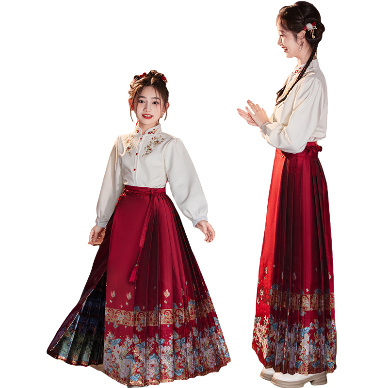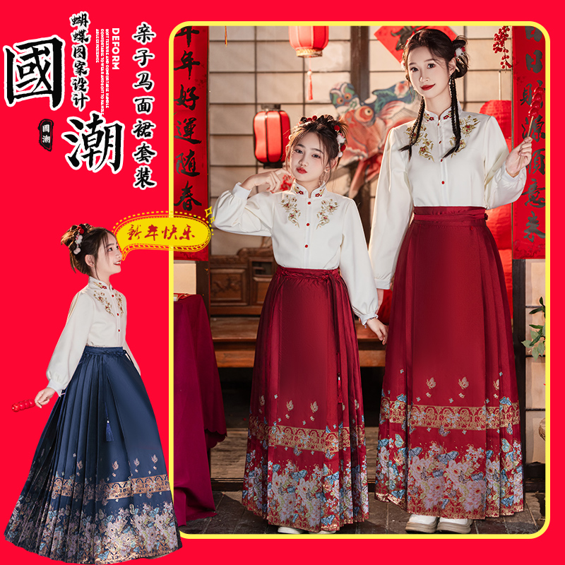 2025春秋季 亲子装 新款 唐装 汉服儿童国风新中式 女童织金马面裙套装