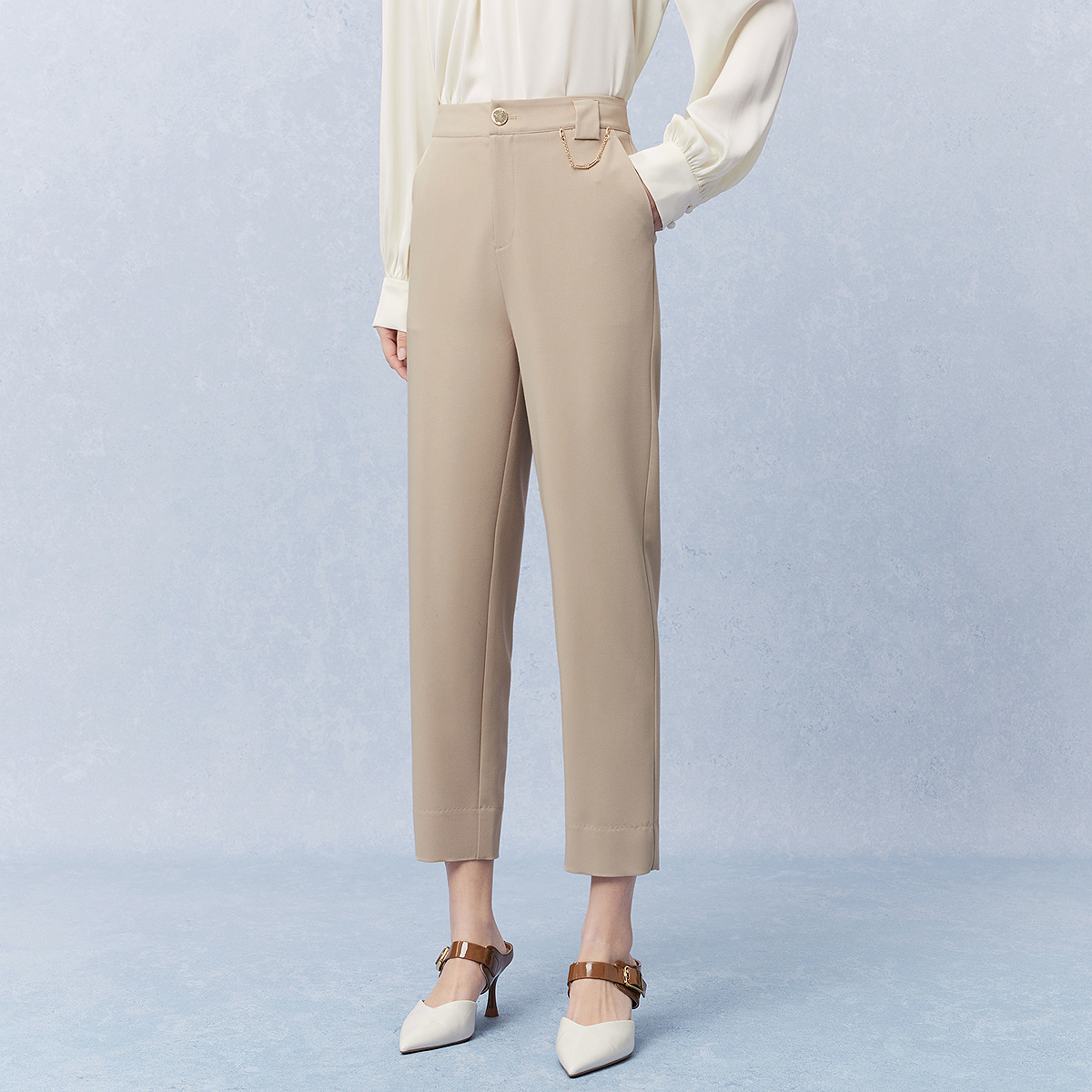 九分高腰西裤 新款 女2024年秋季 FINITY菲妮迪浅卡其微锥直筒休闲裤