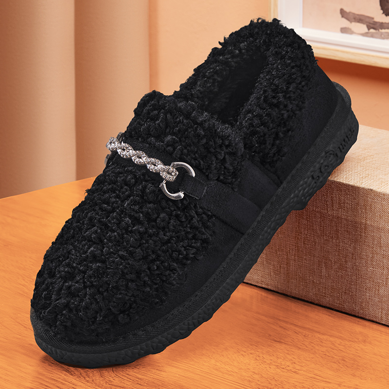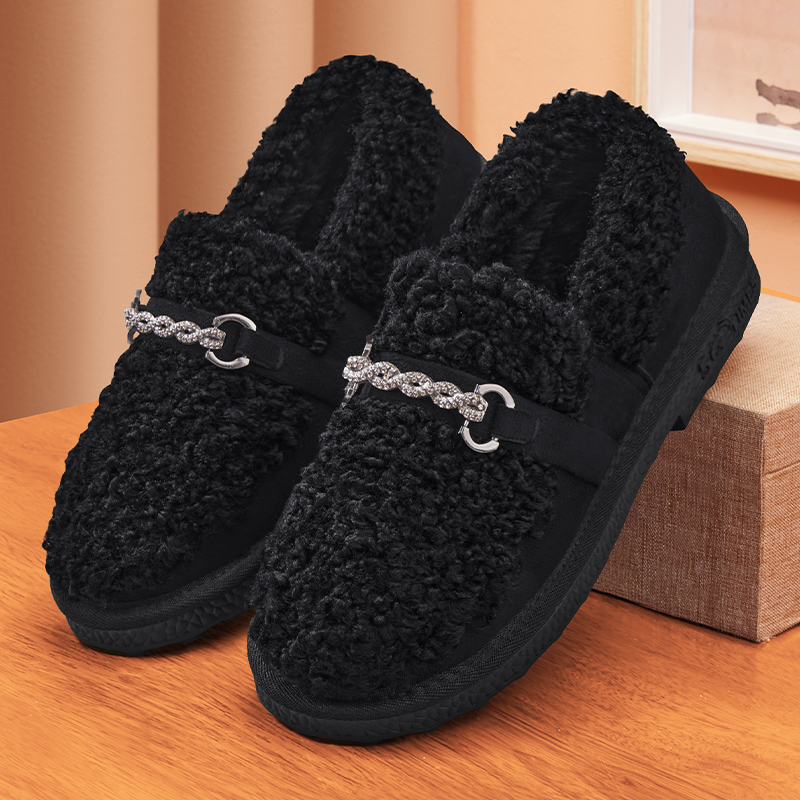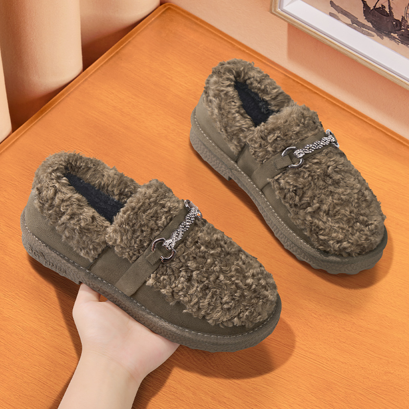 软面防滑毛毛鞋 老北京布鞋 时尚 软底一脚蹬豆豆棉鞋 女秋冬加绒正品