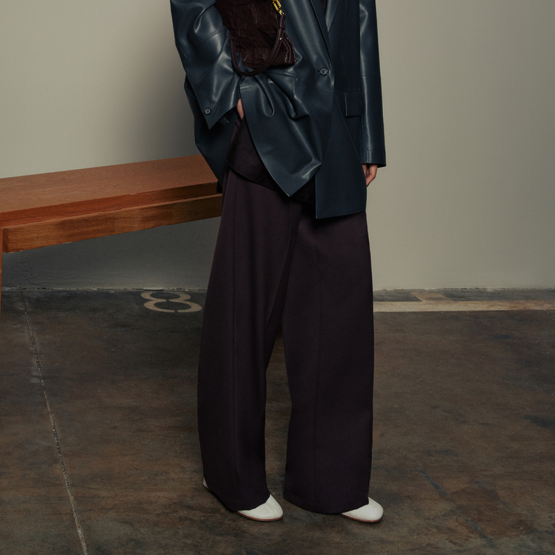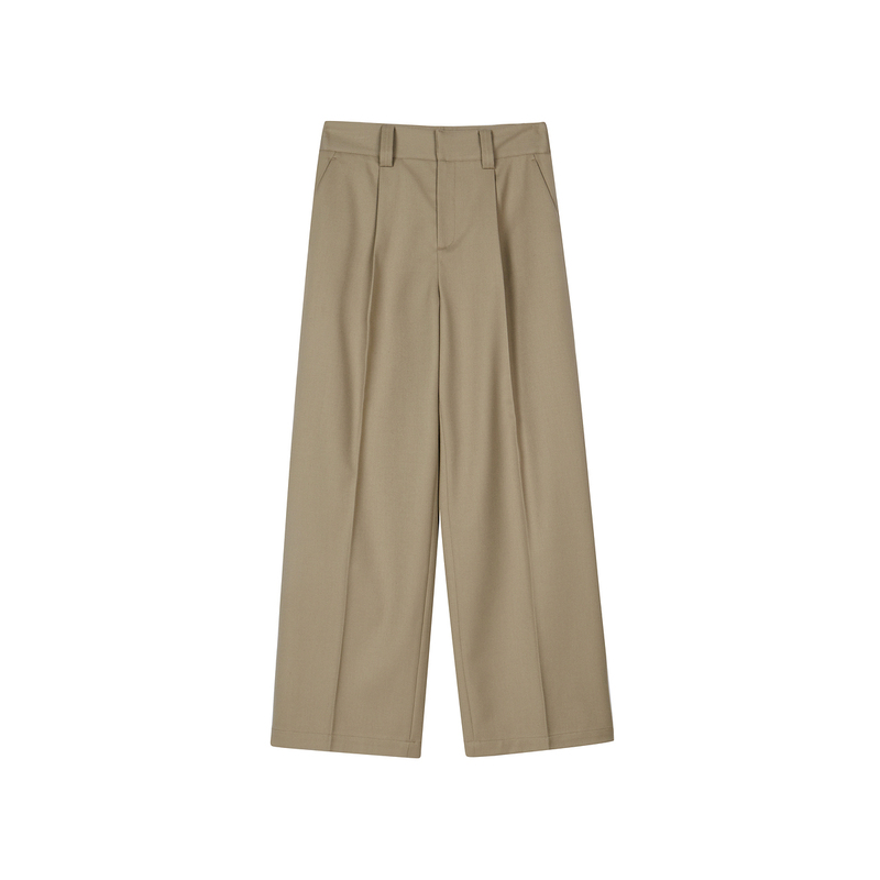女春秋新款 休闲直筒慵懒松弛感裤 高腰垂感窄版 裤 子 西装 黑色阔腿裤