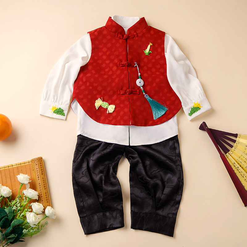 生日礼物周岁礼服男宝宝中国风马甲套装 宝宝男童汉服 儿童抓周唐装