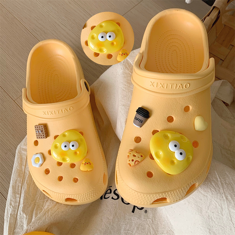 男女ins 创意DIY奶酪包头沙滩鞋 细细条情侣夏季 外穿防滑EVA洞洞鞋