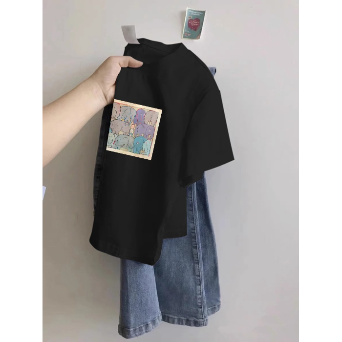 修身 T恤女夏天韩版 显瘦趣味印花纯棉上衣服潮 正肩短袖 小个子短款