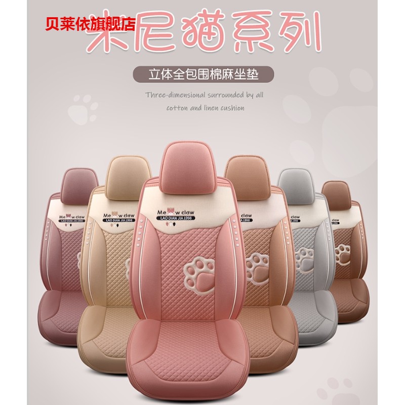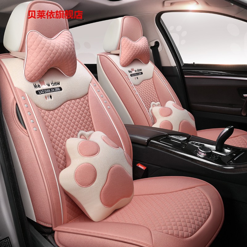 汽车座套亚麻四季 全包布艺坐垫女 通用卡通朗逸高尔夫轩逸思域时尚