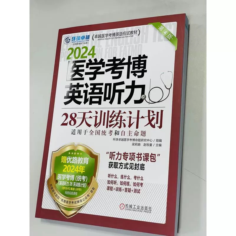 医学考博英语考试用书 正版 卓越医学考博英语应试教材 第4版 实战综合应试教程听力完形阅读理解 医学考博英语听力28天训练计划