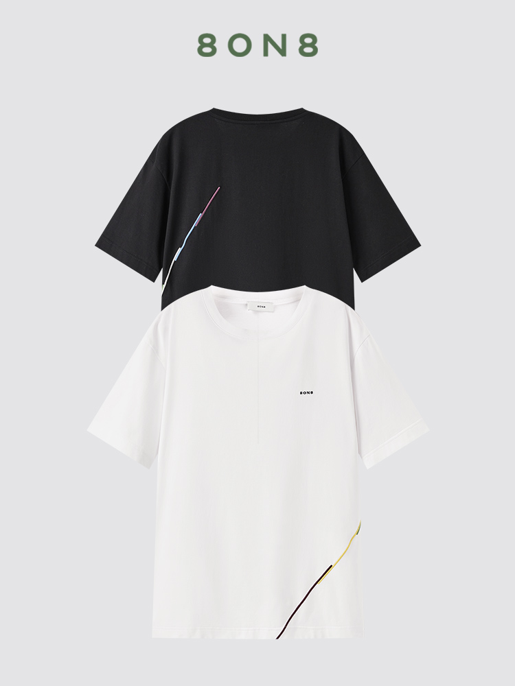 设计感圆领夏季 8ON8张艺兴同款 时尚 T恤新品 上衣 男女纯棉宽松短袖