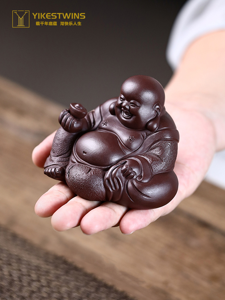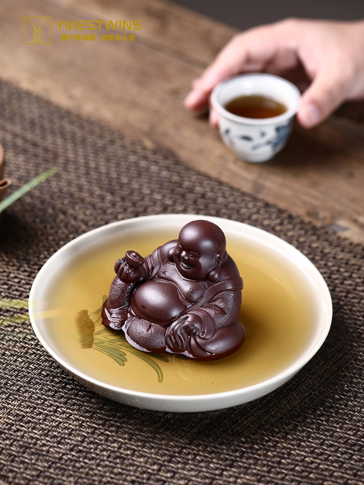 茶道高端手工紫砂茶宠弥勒佛可养茶桌精品摆件手工摆件小和尚茶玩
