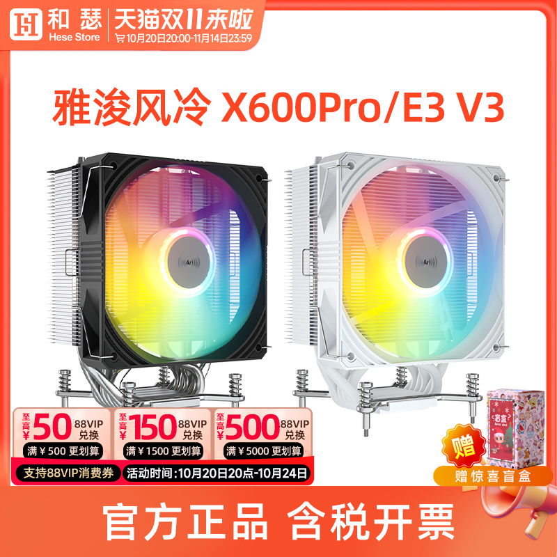 电脑主机白色雅俊风扇 6铜管CPU散热器amd台式 雅浚x600 e3v3风冷4