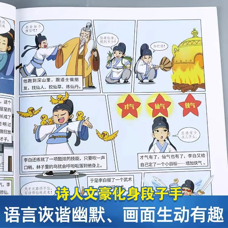 默莫北带你学古诗词张泉灵推荐 全套4册 爆笑唐诗漫画版 一年级二年级儿童漫画书小学生课外阅读书籍诗词绘本读物 汉知简直营