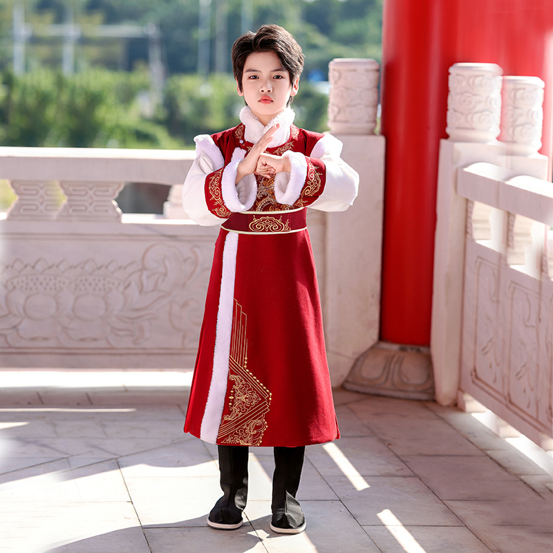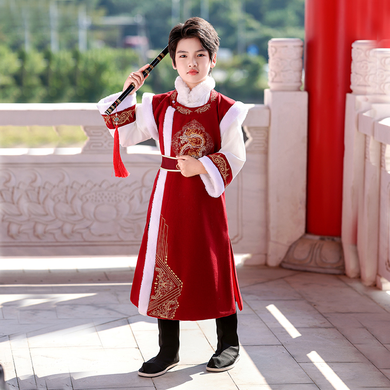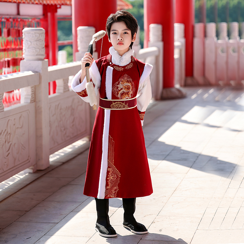 汉服男童少爷中国风2025帅气小男孩国风加厚冬款 小男孩侠客演出服