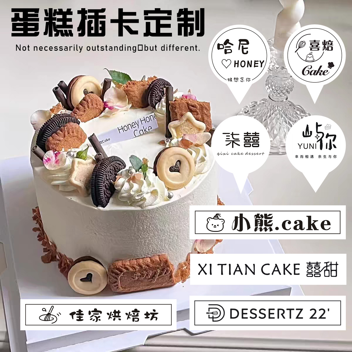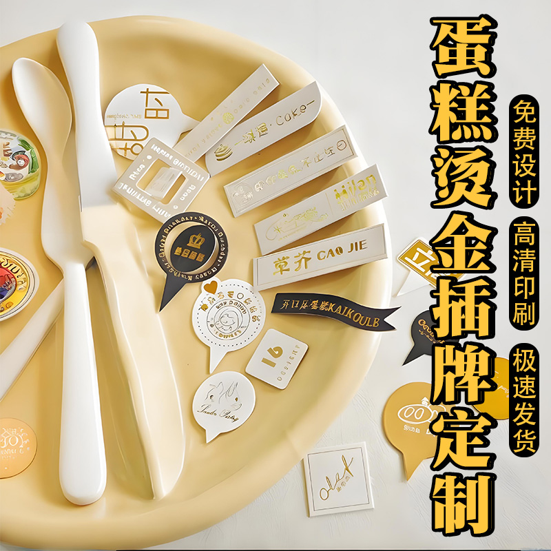 法式 饰插卡烫金logo甜品介绍卡片烘焙插件 蛋挞插牌定制生日蛋糕装