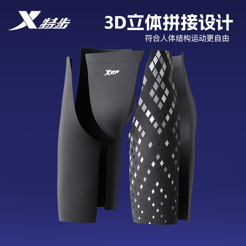 男士 防尴尬速干专业训练温泉游泳裤 2025新款 平角裤 五分裤 特步泳裤