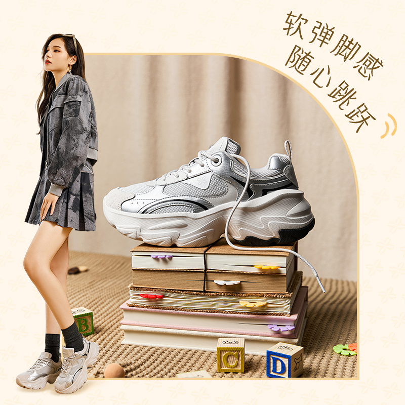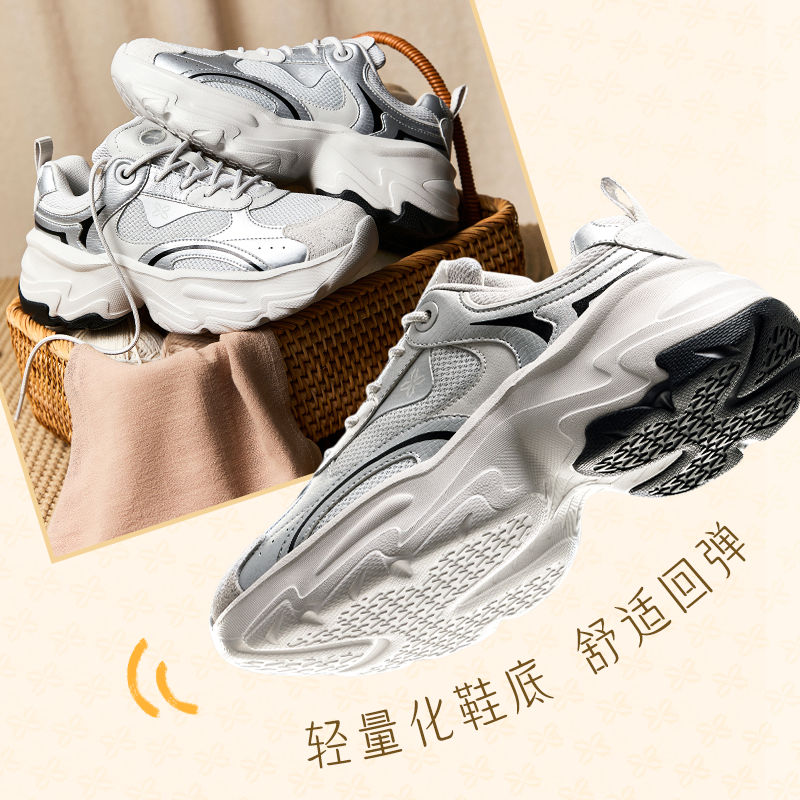 2025秋季 女鞋 新款 增高老爹鞋 安踏白薇 百搭运动鞋 厚底复古休闲鞋