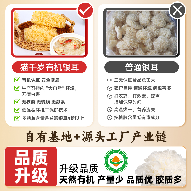 猫千岁银耳干货无硫有机易出胶免泡发炖煮即食非古田银耳商用袋装