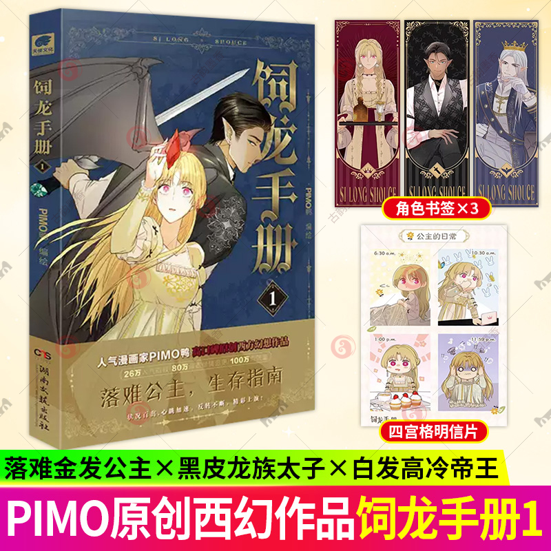 PIMO鸭 快看APP榜单前10作品 落难金发公主x黑皮龙族太子x白发高冷帝王 欧洲玄幻风漫画实体书 2册 画风独特宫廷 饲龙手册1