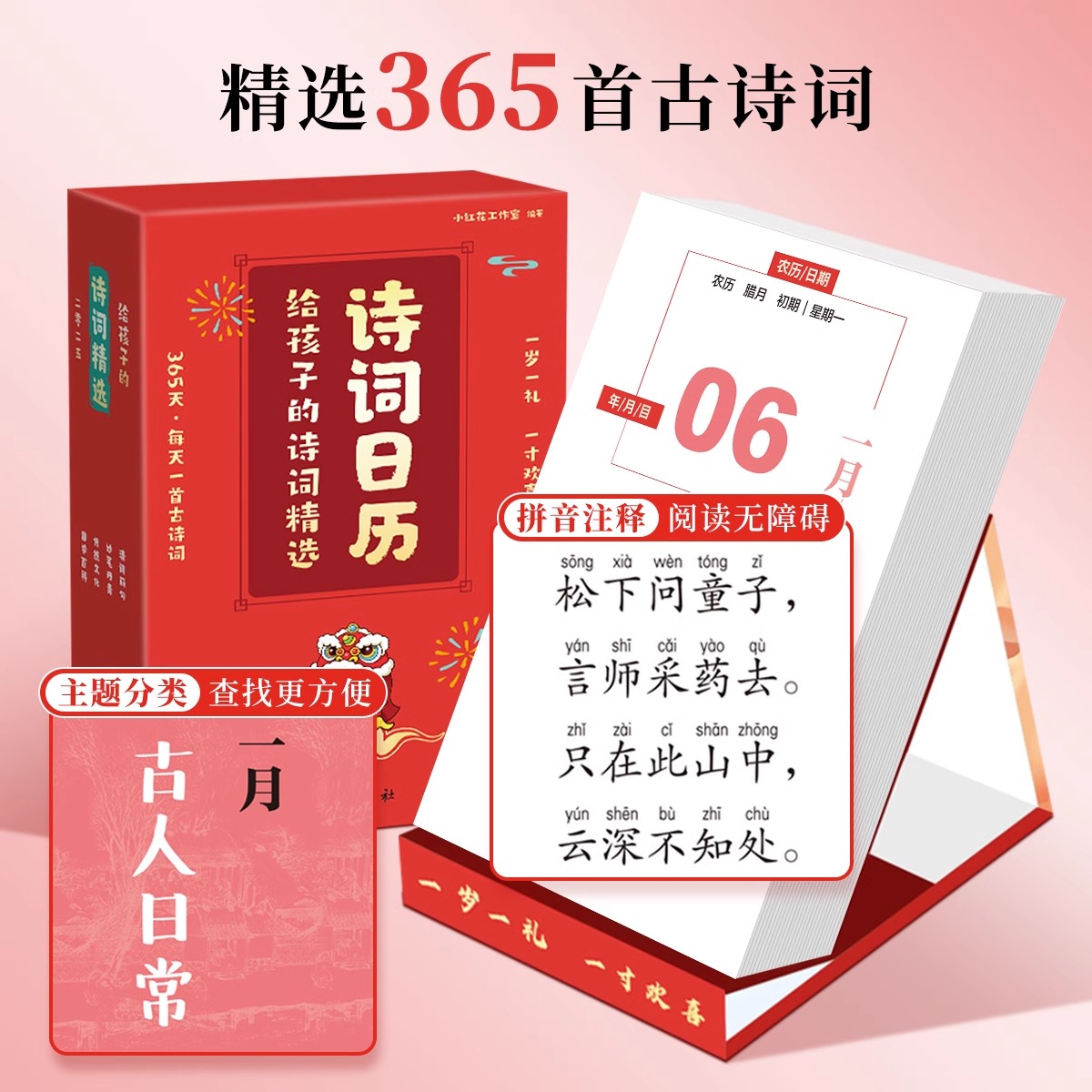 自律打卡365天桌面摆件 精选诗词复古中国风诗歌日历文艺简约古诗词台历全彩蛇年台历新岁倒计时创意个性 诗词日历2025新版 给孩子