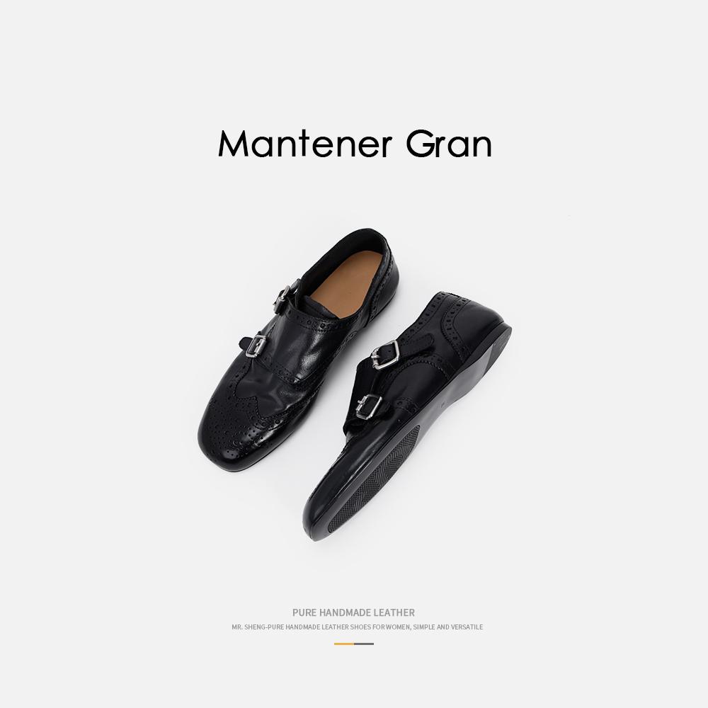 MG女鞋 女孟克布洛克雕复古英伦风小皮鞋 Gran黑色乐福鞋 Mantener