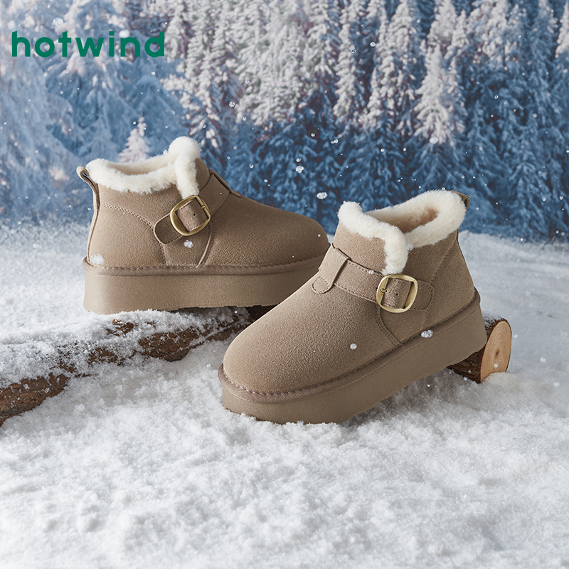 加绒加厚雪地靴复古休闲保暖棉鞋 热风女鞋 女士时尚 新款 冬季