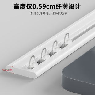 超薄直轨内开窗专用轨道免打孔铝合金顶装 静音单双轨窗帘杆 挂钩式