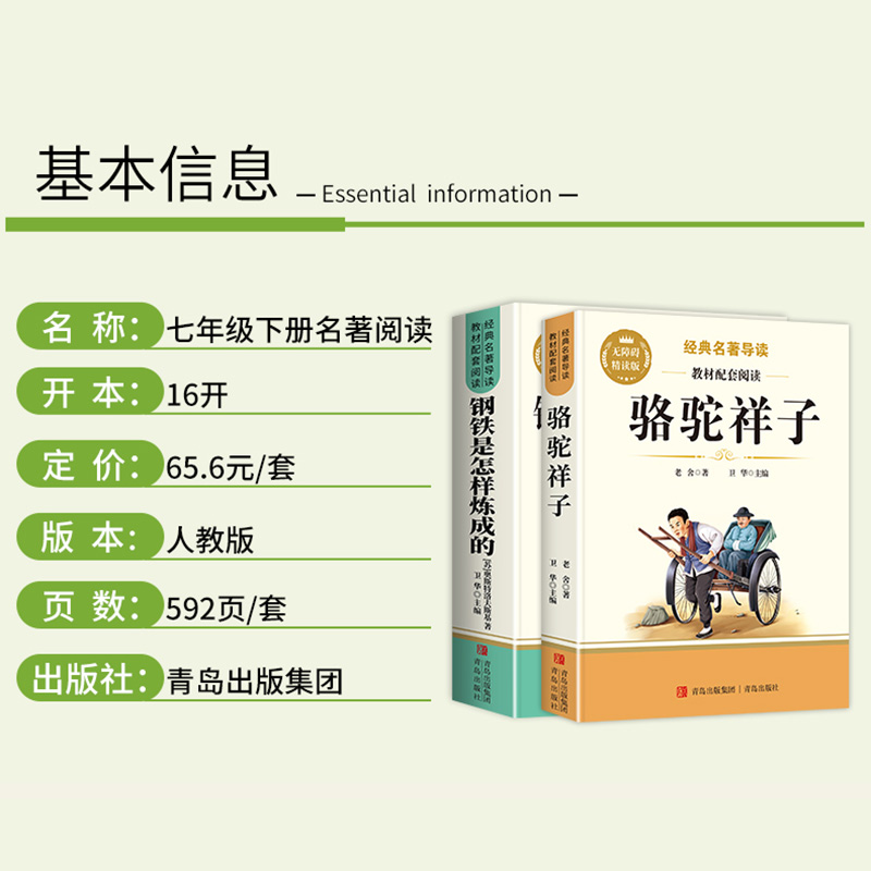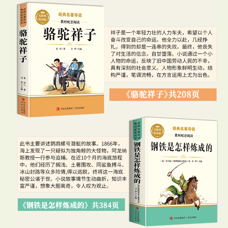 经典 人教版 正版 原著七年级下册必读名著课外书籍初一初中生阅读语文配套教材书目小说完整版 骆驼祥子和海底两万里钢铁是怎样炼成