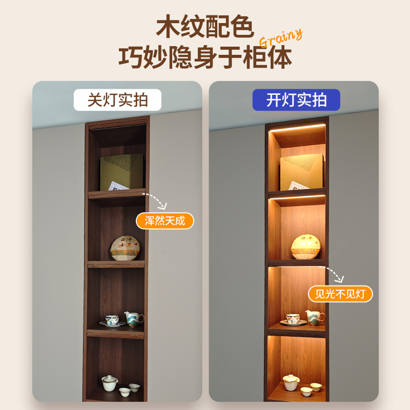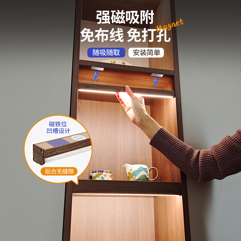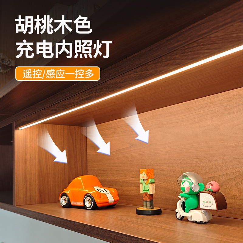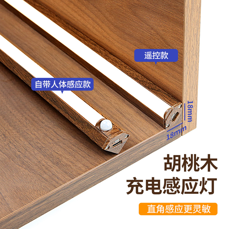 充电橱柜灯带自粘感应灯无线免插电柜子灯展示柜胡桃木色酒柜灯条