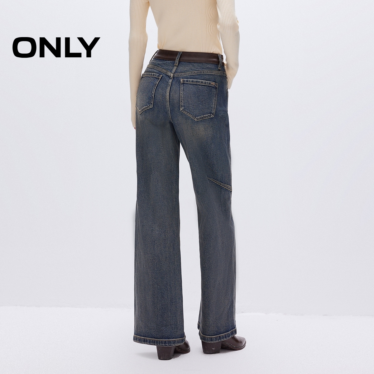 新款 女 莱卡通勤拼接宽松直筒裤 牛仔裤 125132071 长裤 ONLY2025秋季