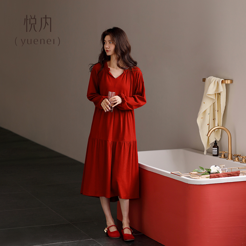 幸棉法式 睡裙女秋超仙睡衣家居服露背高级感连衣裙宽松长裙子 长袖