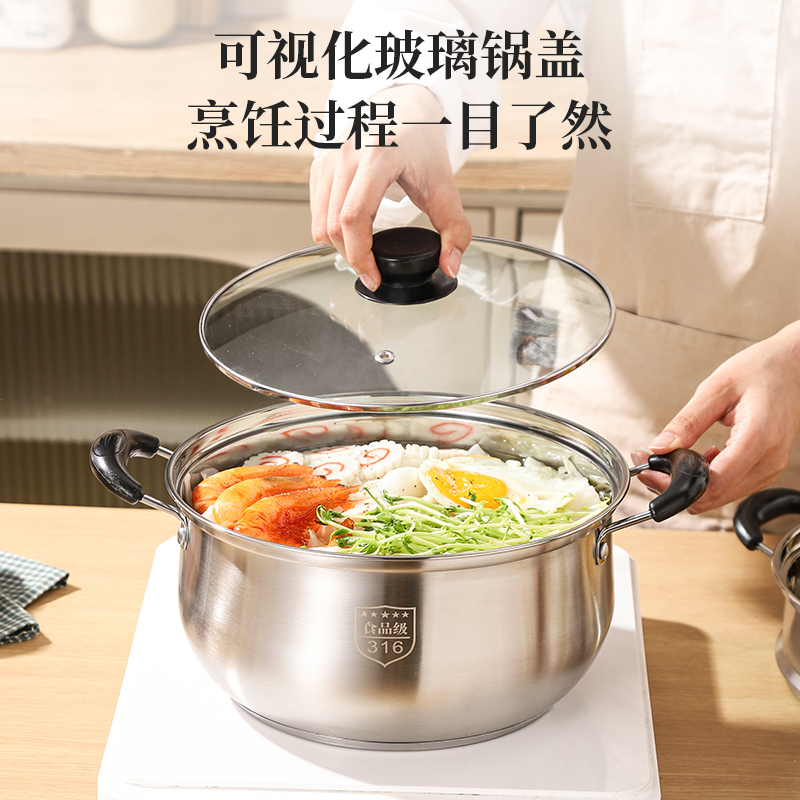 1810加厚不锈钢汤锅家用煮粥锅煲汤锅不粘火锅奶锅婴儿辅食锅蒸锅