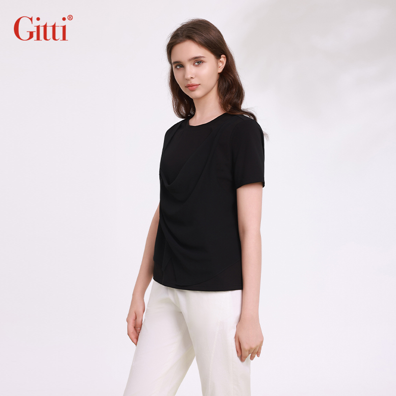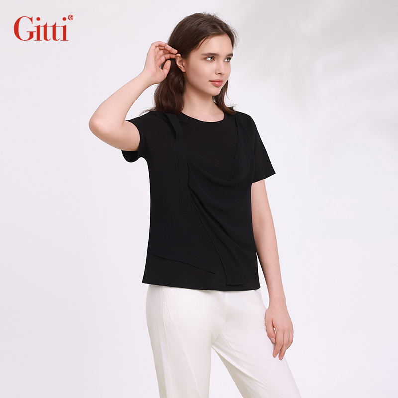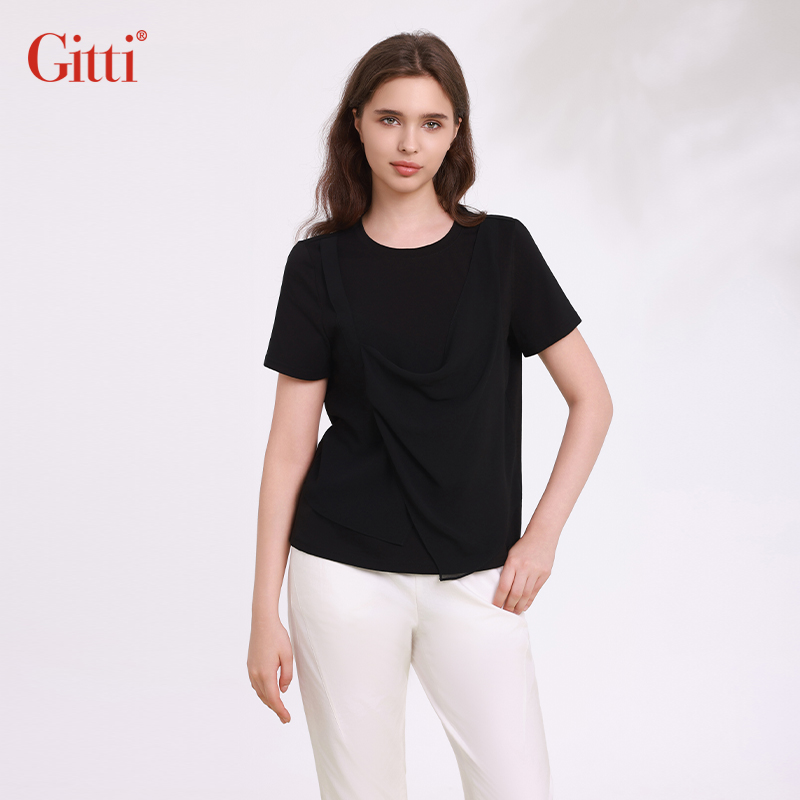 棉舒适亲肤T恤G251527 女显瘦大码 Gitti 吉蒂假两件拼接叠穿短袖