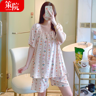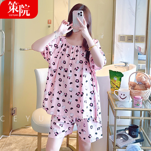 卡通棉绸睡衣女士短袖 宽松大码 套装 夏季 人造棉空调家居服 薄款 韩版