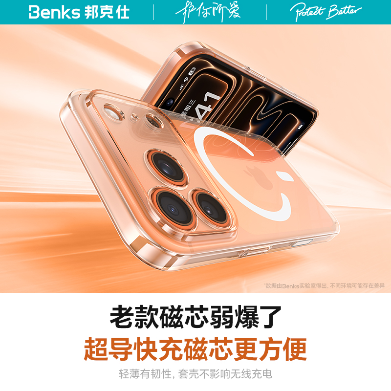 Benks适用苹果17promax手机壳新款 磁吸全透明iPhone16pro超薄透气散热15保护套防摔14pm镜头全包13简约高级感