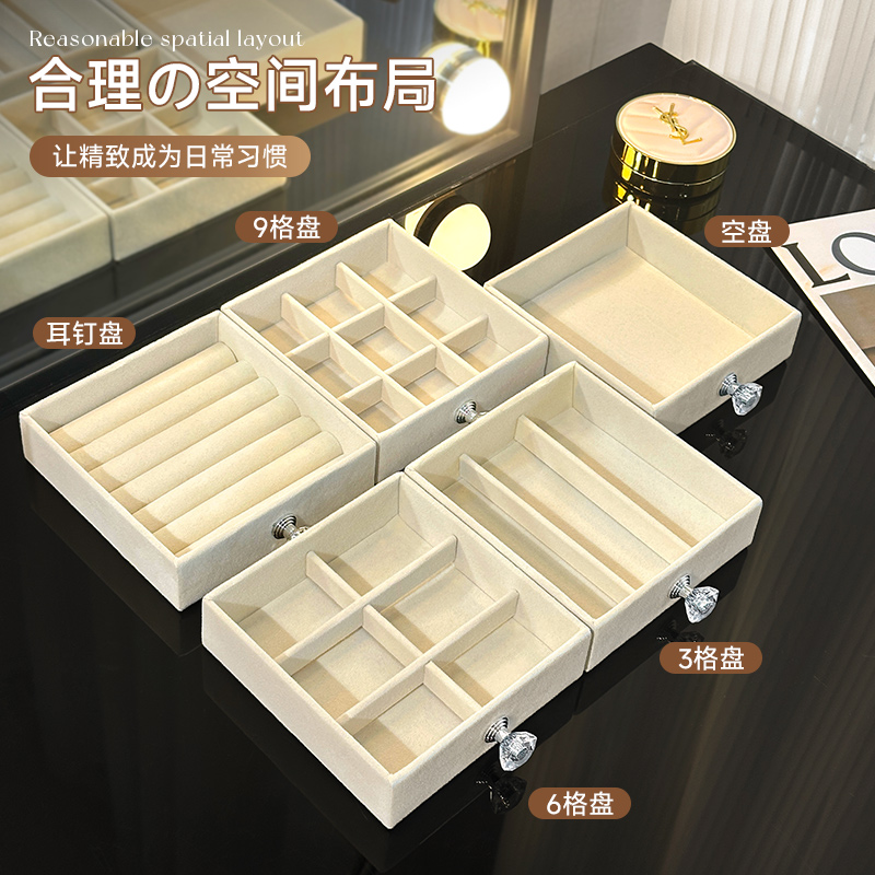 懒角落首饰托盘收纳盒绒布垫饰品戒指手耳环钉项链家用抽屉内分隔
