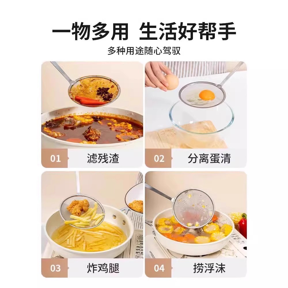 新人0.01家用到手打沫勺不锈钢漏勺过滤网筛火锅撇浮沫隔油勺