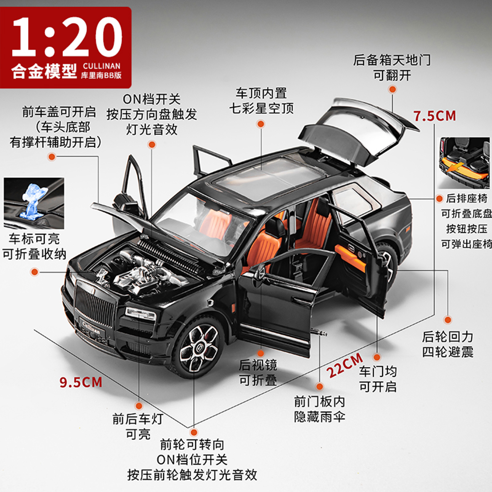 劳斯莱斯库里南汽车模型仿真合金车模男孩收藏摆件2025新款 玩具车