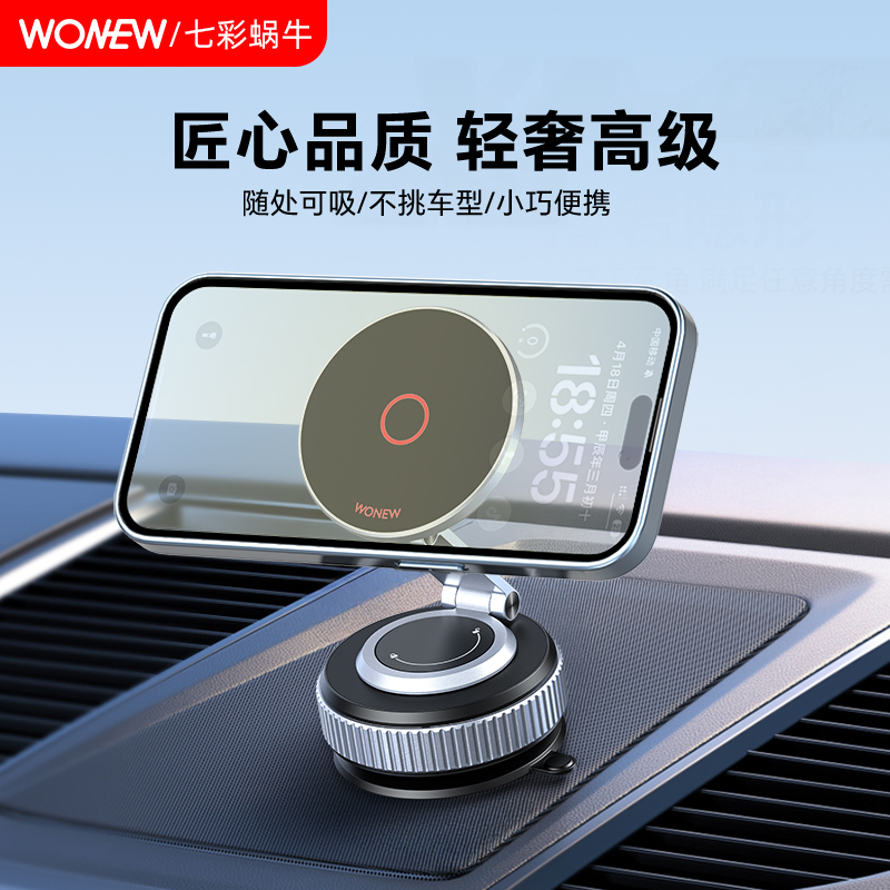 wonew七彩蜗牛车载真空纳米滴胶自拍真空磁吸手机支架magsafe吸附汽车导航专用新款 桌面拍摄vlog手机架 吸盘式
