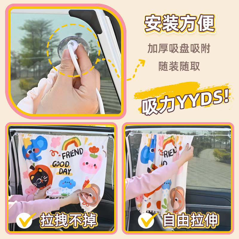 汽车防晒隔热隐私遮阳帘卡通儿童吸盘车窗ModelY车用宝宝挡光神器