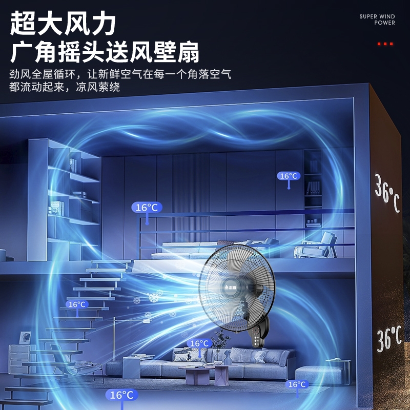 钻石牌壁扇挂壁电风扇家用大风力壁挂式 商用工业轻音循环墙壁风扇