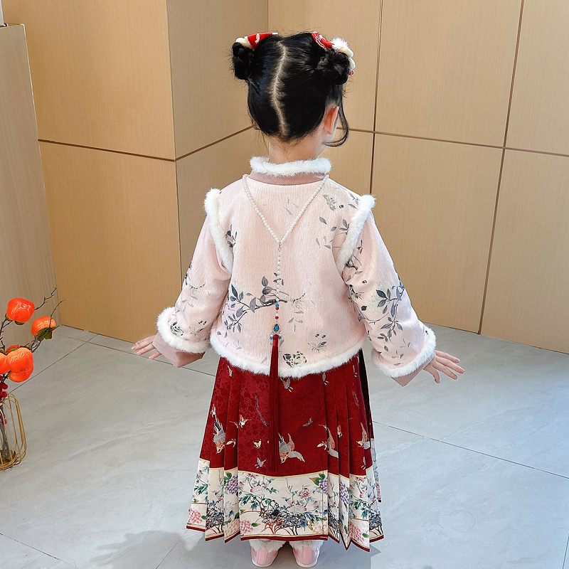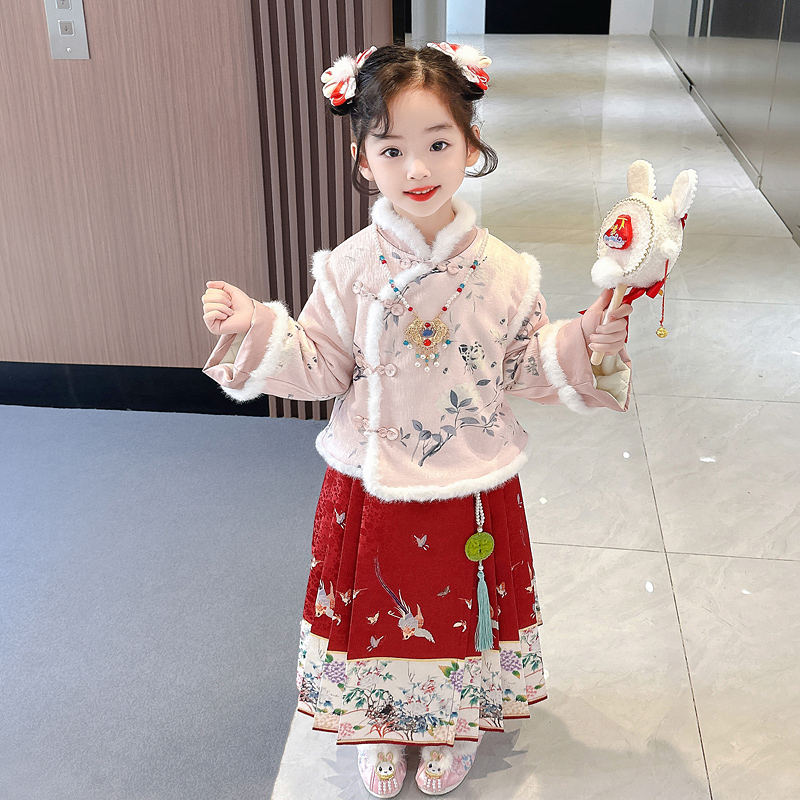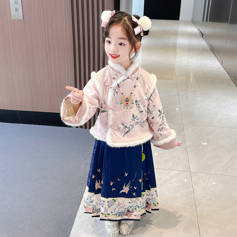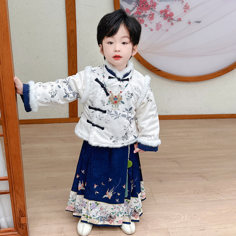 儿童马面裙秋冬季 中国风男童过年衣服 拜年服汉服女童加绒加厚套装