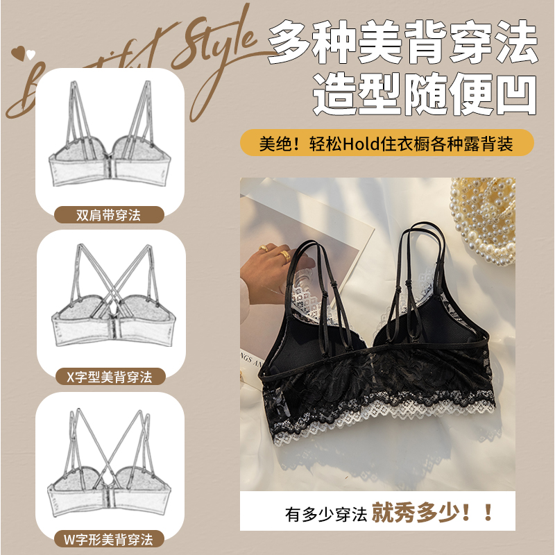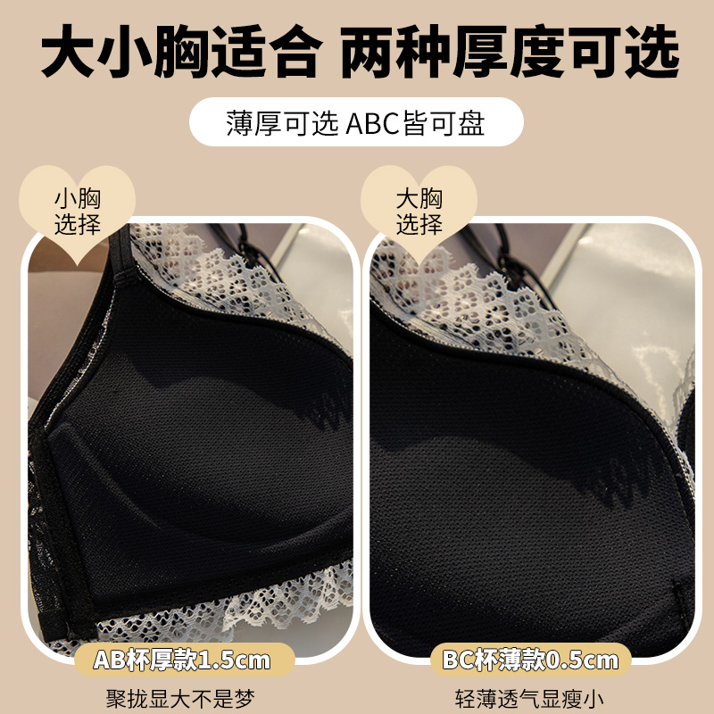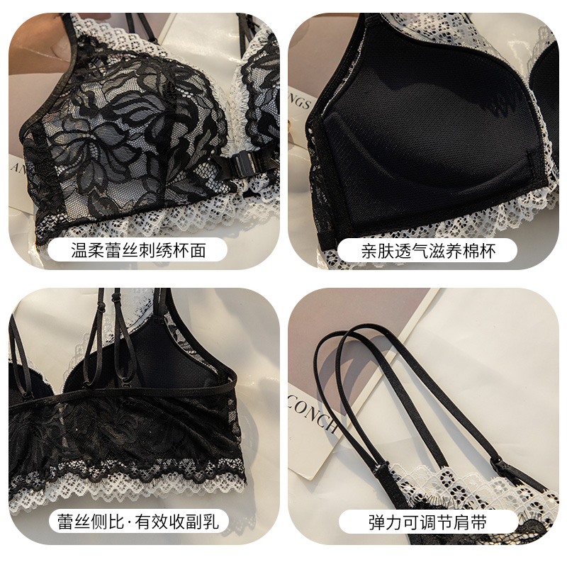 法式 调整 蕾丝透气前扣美背大胸显小性感纯欲黑色小胸聚拢文胸套装